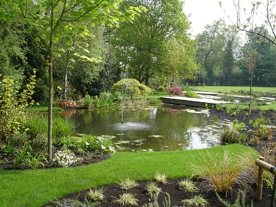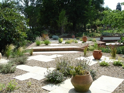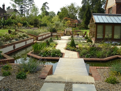Client brief: To design a garden with both traditional and contemporary elements for this new house. Inclusion of water is very important, as are extensive leisure areas and focal points.