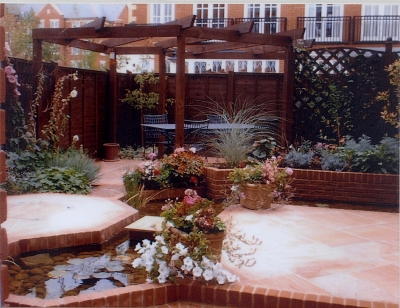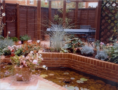 Client brief:To design a garden which provides a living and entertaining extension to the house, whilst reducing the box effect within this small area. It must include water and create continued interest from both the hard materials and the planting throughout the year.
