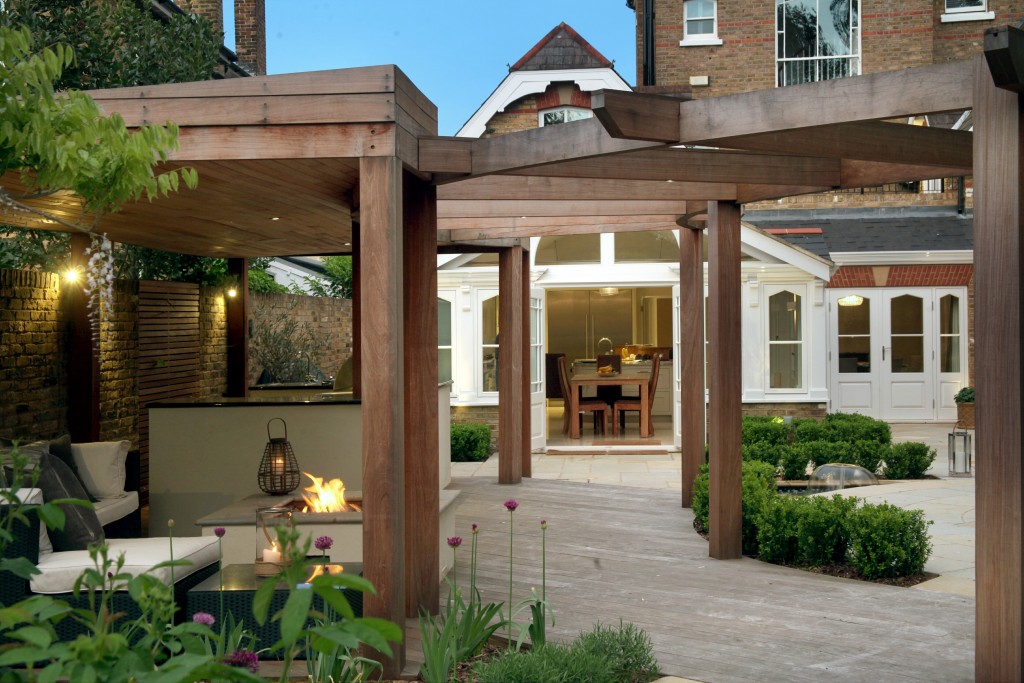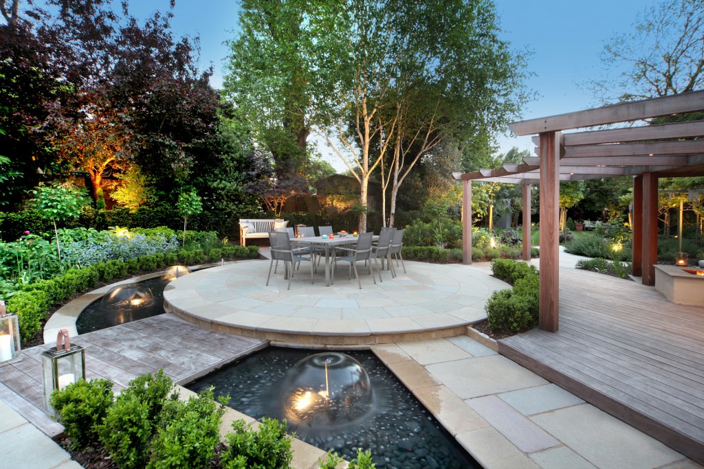 Client Brief: – To design a contemporary garden which forms a complete extension of the house – for dining alfresco and entertaining all year round – primarily for adults.