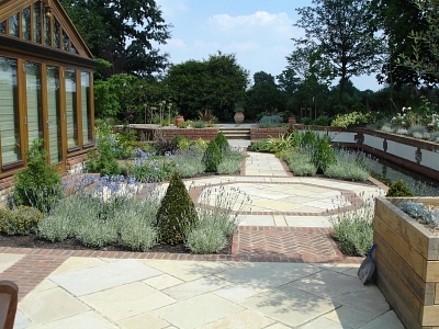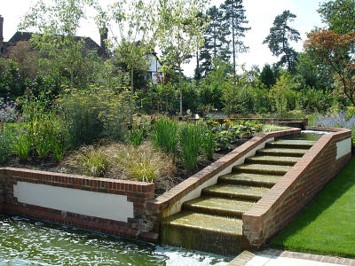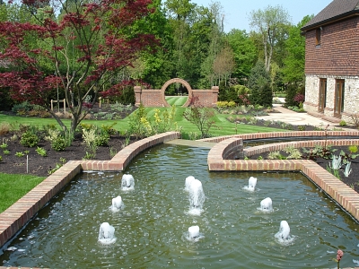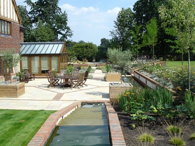 Client brief: To design a garden with both traditional and contemporary elements for this new house. Inclusion of water is very important, as are extensive leisure areas and focal points.