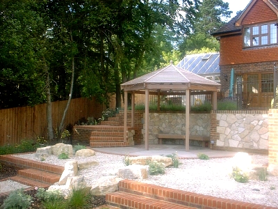 Client brief: To design a garden accommodating the extreme site levels of this new property. It must be child friendly and ideally have as large and level lawn area as possible.